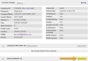 In the Order & Refunds section of the Customer Information page, click the Add Invoice button: